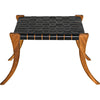 Measuring 23.5 inches in width, 20 inches in depth, and 17 inches in height, the Sparti Stool strikes a perfect balance between functionality and aesthetics, making it an ideal choice for various rooms in your home. Crafted with meticulous attention to detail, this stool features a combination of teak and leather materials, exuding a rustic yet contemporary charm. The teak frame with its clear coat finish showcases the wood's natural beauty, while the black leather upholstery adds a touch of sophistication and luxury.