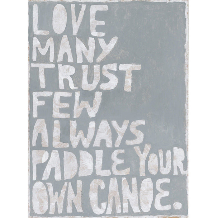 This subtle but touching art print speaks to a universal truth: "Love Many Trust Few Always Paddle Your Own Canoe". Inspire your family and visitors to your home with this beautiful reminder to stay on your own track and keep moving forward.