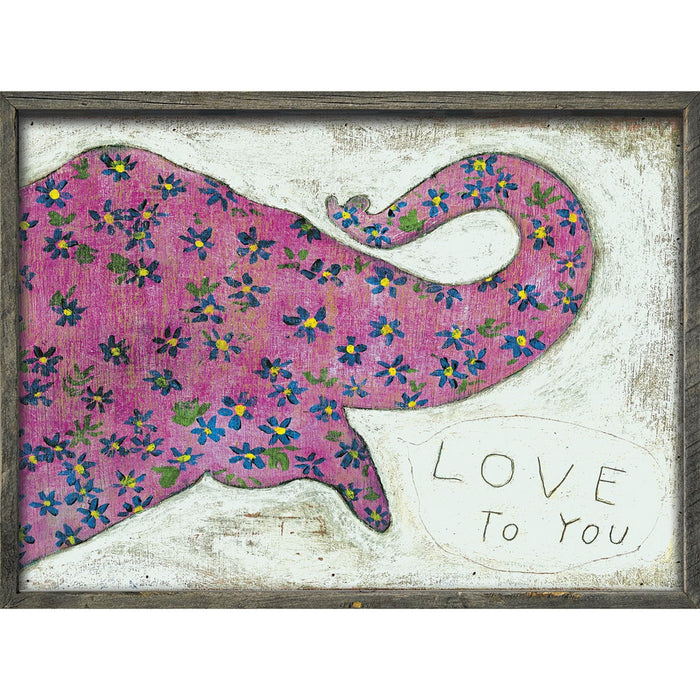 A Sugarboo Designs classic! A pink elephant covered in beautiful flowers spouts the words, “Love to You.” This pink elephant on parade will brighten the day of all who see it!