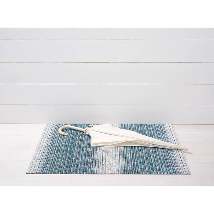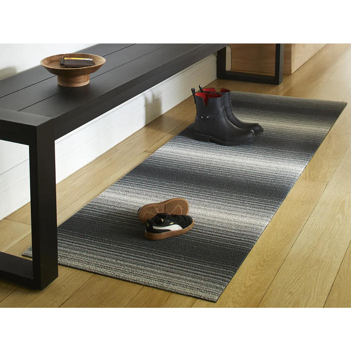 Inspired by the play of light and shadow created by shifting sunbeams, Fade redefines stripes through its dynamic ombre effect. Tufted bi-color yarns, which combine multiple hues along a single strand, form fine lines of varying widths and intensities within a richly textured surface. Shag mats are ideal for bathrooms, outdoor terraces, pool areas, and entryways. Good in all weather and quick to dry. Resistant to mold, mildew, and chlorine. Suitable for indoor and outdoor use. Made in the USA. Free of phthalates.