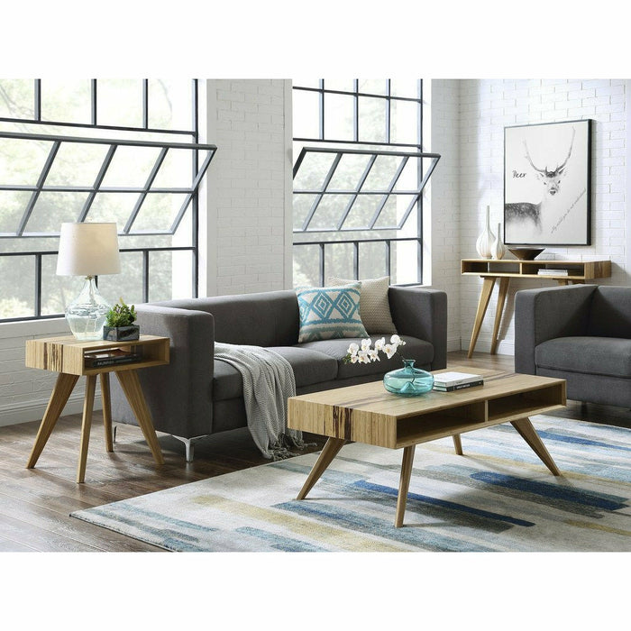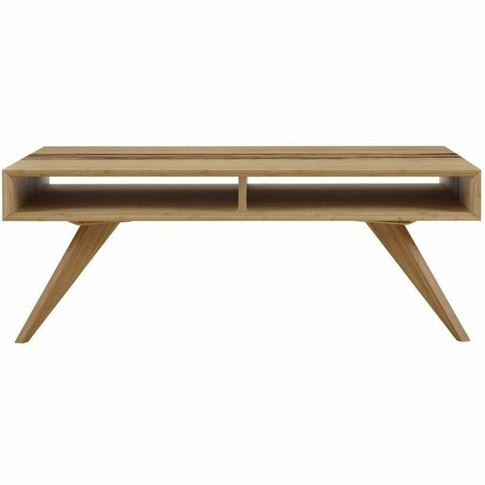 Expertly crafted in earth friendly solid bamboo, Greenington’s modern Azara coffee table highlights a center accent of exotic Tiger bamboo which waterfall down the sides. Beautifully beveled edges surround clever built in cubbies to stash your remote, magazines and any items you want to keep handy.