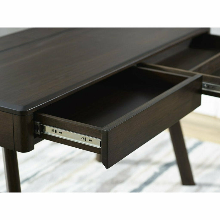 Featuring two large storage drawers which span the entire width of the desk, Jasmine also offers handy cord management, power and USB outlets, offering convenience and up to date connectivity for your home office.