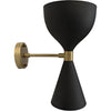 This curvy hourglass shaped sconce's contemporary lines make it the ideal addition to a modern decor. Dual finishes, in black and antique brass provide additional interest.