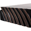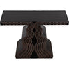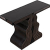 Undulating carvings that recollect open hands and old growth forests cover the waved base, as well as the edges of the rectangular top, of this unique console. Crafted of mahogany, the wood is finished with Noir's rich Pale finish and given light brown highlights that accentuate its sweeping lines.